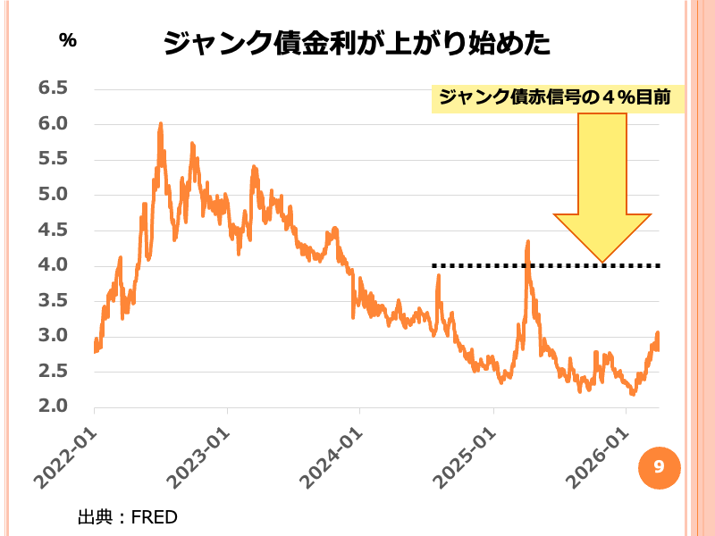 ジャンク債金利(米国債との金利差)直近の図